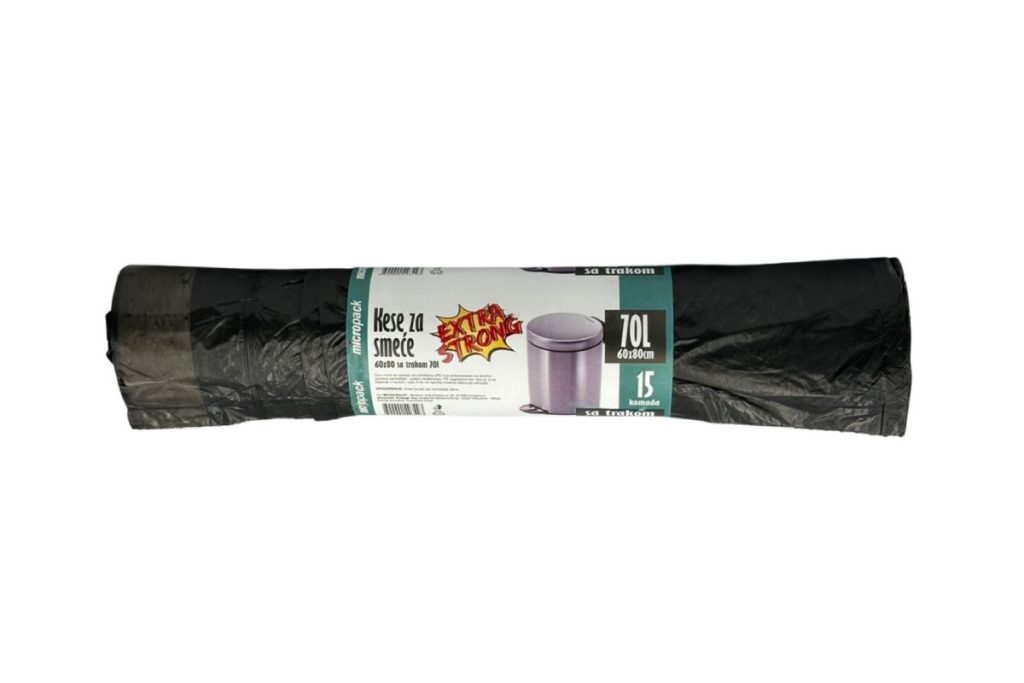 *Naziv artikla: Kese za smece MICROPACK EXTRA STRONG LDPE 15/1 crne sa trakom *Dimenzija/zapremina: 60X80 70L 18mc. *Transportno pakovanje: 30 komada